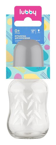 Описание Бутылочка д/корм с силик. соск. мол., с тал. 0+ мес стекло Lubby 120 мл/уп6 16032