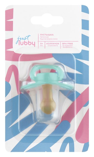 Характеристики Пустышка круг. сосок, 0+ мес, лат. колп. Just Lubby/уп24 32076