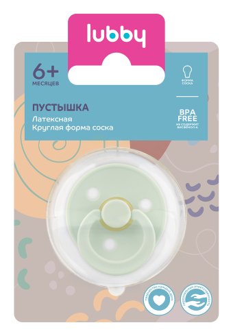 Характеристики Соска-пустышка круг. сосок, 6+ мес, лат. Lubby/уп12 29983