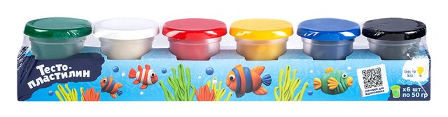 Набор из 6 цветов теста-пластилина по 50гр в баночках с крышками-штампиками. Игра с тестом-пластилином подходит для детей от 3-х лет, развивает творческие способности и воображение. Также подходит для развития мелкой моторики. Не липнет к рукам, одежде и повнрхностям, не оставляет следов и не окрашивает руки и поверхности.