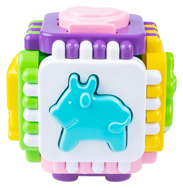 Логический кубик - понятная каждому ребенку игрушка с широкой функциональной нагрузкой. Куб состоит из шести граней разного цвета, в каждой из которых имеется отверстие в форме определенной зверюшки (заяц, собака, медведь, курица, корова, свинья). Цель игры: разместить всех зверюшек по своим местам. К каждому из этих отверстий подходит лишь одна фигурка. Логический куб способствует развитию мелкой моторики рук, пространственного и логического мышления, дает первичные знания о цветах и формах. Длина ребра - 12 см.