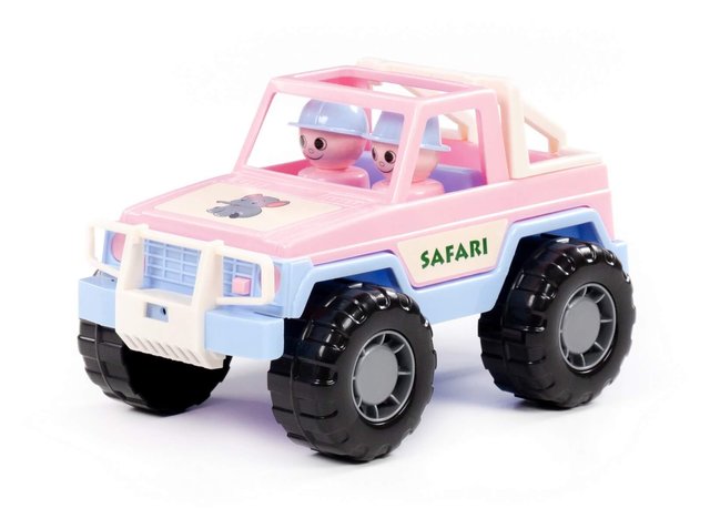 Автомобиль выполнен в стиле сафари и имеет современную нежно-розовую расцветку. В кабине джипа сидят два человечка, которые разнообразят игру и сделают её еще интереснее. Автомобиль-джип "Сафари" может быть представлен и в других цветах, что позволяет выбрать именно тот автомобиль, который придётся по душе ребёнку.