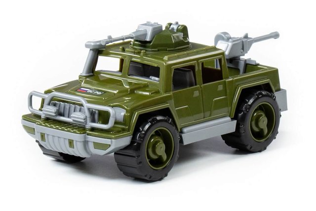 Серия автомобилей «Разведчик» от фабрики «Полесье» представлена в виде стильных джипов, адаптированных для выполнения военных операций. Игрушка имеет реалистичный дизайн. Автомобиль-пикап военный "Разведчик" с 2-мя пулемётами изготовлен в защитном цвете, имеет вместительный багажник, на крыше автомобиля и в багажнике установлены пулемёты (их можно вращать). Для многих детей, а особенно для мальчиков, важно наличие разнообразных машинок в арсенале игрушек. Они позволяют познакомиться с разными видами транспортных средств, понять, как они устроены. Благодаря прочности материала, из которого изготовлена игрушка, автомобиль долго прослужит ребёнку!