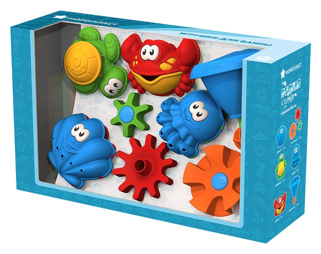 Набор игрушек для ванной «Водная серия» обязательно понравится малышу и превратит обычные водные процедуры в увлекательное приключение. Стоит налить в обитателей водного мира воды и благодаря отверстиям в игрушках, из них польются струйки воды, а если на панцирь черепашки направить напор воды, панцирь начнет крутиться, так же в набор входят шестеренки и умывальник, соединив шестеренки друг с другом и направив на одну из них напор воды, все шестеренки закрутятся. Благодаря присоске на задней части игрушек, их можно закрепить на любой гладкой поверхности. Прочный безопасный пластик, яркие цвета, которые не тускнеют со временем, четкая деталировка.