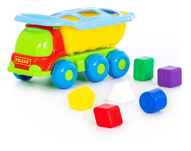 Логический автомобиль-самосвал "Кеша" - это не просто машинка, а развивающая игрушка для детей от 3-х лет. В кузове автомобиля логическая задачка: 6 отверстий-пазлов разных геометрических форм, под каждое малышу нужно подобрать соответствующие фигуры. Фигурки отличаются по форме и цвету, что формирует у ребёнка представление о предметах и развивает цветовосприятие. Фигурки легко достать обратно: нужно открыть крышку самосвала, потянув за специальную ручку над кабиной. В логическом самосвале "Кеша" можно перевозить и другие мелкие грузы. Игрушка развивает пространственное мышление, воображение, логику, мелкую моторику рук ребёнка.
