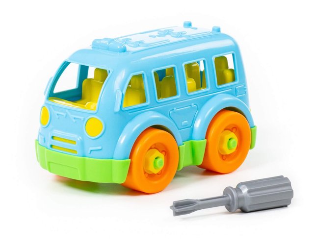 Конструктор-транспорт «Автобус малый» от компании «Полесье» - это универсальная игрушка 2 в 1, которая может служить малышу в качестве конструктора и машинки для сюжетных игр. Игрушка выполнена из высококачественного пластика в яркой цветовой гамме. В комплекте имеется крестообразная отвертка. Игра с конструктором «Автобус малый» способствует реализации конструктивно-модельной деятельности ребенка, развитию любознательности и смекалки.