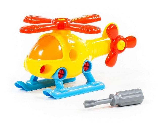 Для самых любопытных малышей, которые хотят поближе познакомиться с разными видами транспорта, фабрика «Полесье» представляет конструктор-транспорт "Вертолёт". Игрушка выполнена в ярких цветах, из качественного материала, имеет округлую форму. Все элементы вертолёта представлены в виде конструктора, который соединяется с помощью пластмассовых шурупов. В наборе также идёт крестообразная отвёртка, которая разнообразит игру, сделает её еще интереснее, позволяя без труда разбирать и собирать вертолёт. Игра с таким конструктором знакомит ребёнка с первыми навыками моделирования и конструирования, а также развивает фантазию.