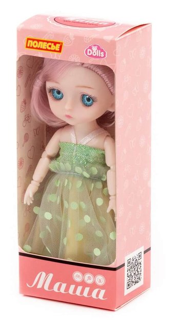 Кукла «Маша» - идеальная подружка для вашей маленькой модницы. Она имеет компактный размер, ее так удобно взять с собой на прогулку. Кукла «Маша» на шарнирах обладает невероятной гибкостью, может принять практически любую естественную человеческую позу благодаря 13 точкам артикуляции: в области шеи, плеч, локтей, запястий, бедер, коленей и ступней. Эти особенности игрушки дают ребенку больше возможностей и позволяют управлять куклой, делая игру более разнообразной и интересной. Игрушка имеет выразительный взгляд, стильную прическу и необычный наряд. Время, проведенное с куклой «Машей», помогает ребенку развивать воображение, мелкую моторику, пространственное и ассоциативное мышление. Проигрывая различные ситуации, ролевые модели, малыш получает возможность развития своих коммуникативных навыков. Внешний вид одежды кукол на изображении может отличаться.