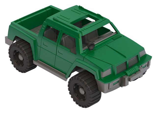 Внедорожник, созданный специально для передвижения по самым сложным маршрутам. Внутрь помещается небольшая фигурка водителя. Мощные рифленые колеса без труда смогут преодолеть неровности дороги. С помощью машинки ребенок развивают мелкую моторику, цветовое восприятие.