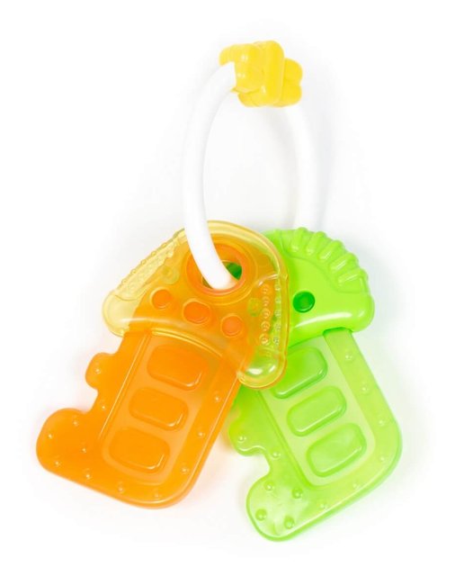 Погремушка-прорезыватель "Ключики" привлечет внимание ребенка и поможет в развитии зрительного и тактильного восприятия. Мягкие бороздки ключиков изготовлены из безопасного материала и идеально подходят для массажа десен во время прорезывания зубов, облегчая дискомфорт и помогая малышу чувствовать себя спокойнее. Удобное колечко позволяет крохе легко держать игрушку в ручках, развивая мелкую моторику и координацию движений.