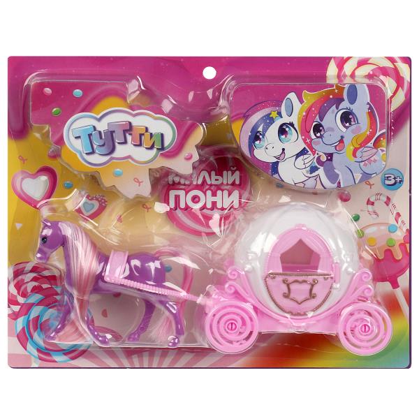 Пони 8 см, пластиковый, с каретой, на блистере Тутти в кор.2*48шт