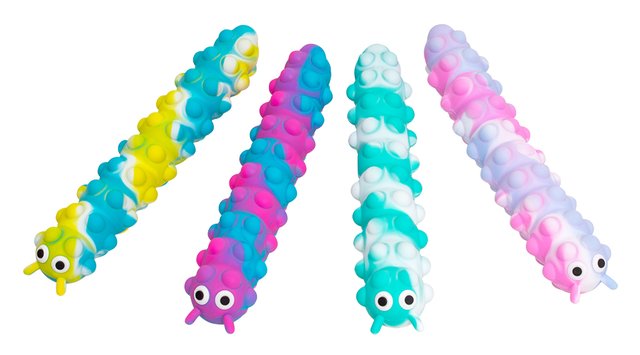 Игрушка-антистресс 2 в 1 – сквидопоп и поп-ит. Объемный сквидопоп в виде гусеницы при ударе о плоскую поверхность прилипает за счет присосок, а затем, при удалении с поверхности, издает приятный звук. Пупырки на поверхности гусеницы можно лопать бесконечно долго, сжатием игрушки они легко возвращаются в исходное положение. Игрушка способствует развитию у детей мелкой моторики, координации движений, сенсорного восприятия. Такой поп-ит можно использовать в качестве игрушки-антистресс, ведь он способен оказать успокаивающее воздействие как на детей, так и на взрослых, помочь снизить уровень тревожности и снять напряжение. Размер игрушки: 26*4,5*5 см. 4 цвета в ассортименте.