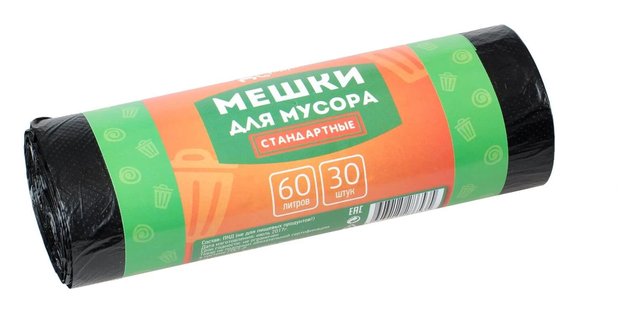 Без мусорных мешков не обойтись ни дома, ни на даче, ни во время пикника или благоустройства участка. Они применяются для утилизации пищевых отходов и различного мелкого мусора. Пакеты защищают помещение от неприятных запахов, а ёмкость для отходов — от загрязнений. Пакеты сделаны из прочного полиэтилена толщиной 8 мкм. В одном рулоне находится 30 штук мешков объемом 60 л.