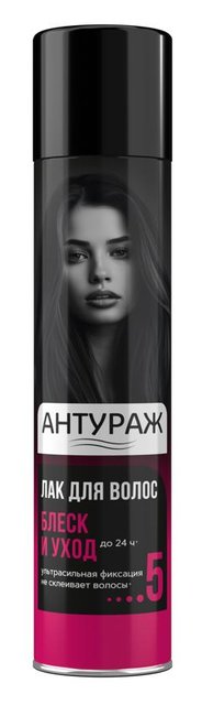 Антураж Лак для волос Блеск и объем, 250 мл. средство для укладки волос сверхсильной фиксации до 24 часов. После использования волосы не склеиваются, выглядят здоровыми и блестящими. Прическа фиксируется надёжно, ведь лак сверхсильно скрепляет локоны после укладки.Входящие в состав компоненты, такие как натуральный бетаин и полимеры, сохраняют причёску в прекрасном состоянии даже под головным убором. Благодаря тому, что волосы после использования лака не склеиваются, их легко расчесать, а значит, в любой момент вы можете поправить причёску в случае необходимости, не опасаясь повредить тонкую структуру волоса. После использования средства для укладки волос Антураж волосы выглядят естественно и приобретают лёгкий аромат.