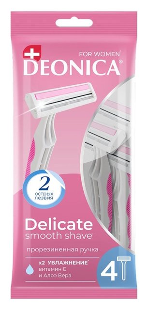 Характеристики Deonica Бритва д/женщ. однораз. 2 лезвия 4шт/уп10 3934