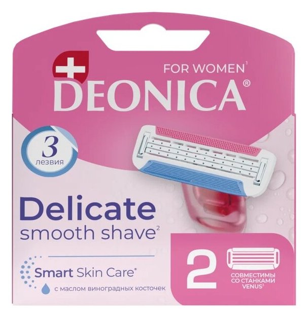 Характеристики Deonica Сменные кассеты д/женщ. 3 лезвия 2шт/уп10 8296