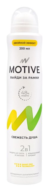 Описание Дезодорант-антиперспирант ЖЕН MOTIVE "Свежесть душа" 200мл(спрей)/уп12