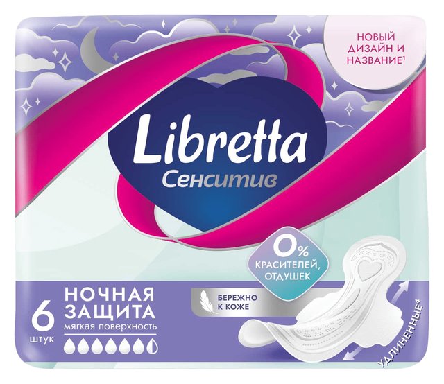 Описание LIBRETTA Прокладки Сенситив Ночные 6шт /уп14 4218