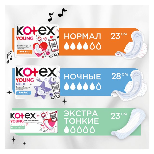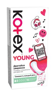 Ежедневные прокладки Kotex Young – созданы специально для девочек. Ультратонкие и 100% дышащие, они практически не ощущаются на белье. Голубой впитывающий слой обеспечивает экстра защиту, а мягкие 3D впитывающие подушечки создают максимальный комфорт. Каждая одноразовая женская прокладка упакована в индивидуальную упаковку, что гарантирует удобство и гигиеничность при использовании.