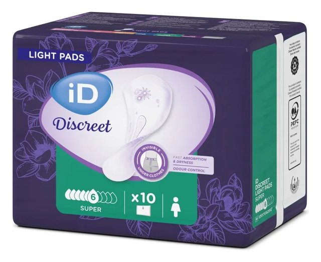 Урологические прокладки iD Discreet Super разработаны специально для современных женщин с недержанием средней степени, которые живут активной жизнью, занимаются спортом, присматривают за детьми, строят карьеру и стремятся заботиться о себе. Урологические прокладки iD Discreet Super на 30% тоньше обычных урологических прокладок, при этом сохраняют ту же впитывающую способность, не ощущаются на белье при ношении и незаметны под одеждой. Гибкость, мягкость и прочная фиксация делает их идеальными для любых видов активности — шопинга или работы в офисе, прогулок по городу или отдыха на природе, подвижных игр с детьми или занятий спортом. Абсорбирующий слой надежно удерживает влагу, а двойная защита от протеканий предотвращает ее попадание на одежду.